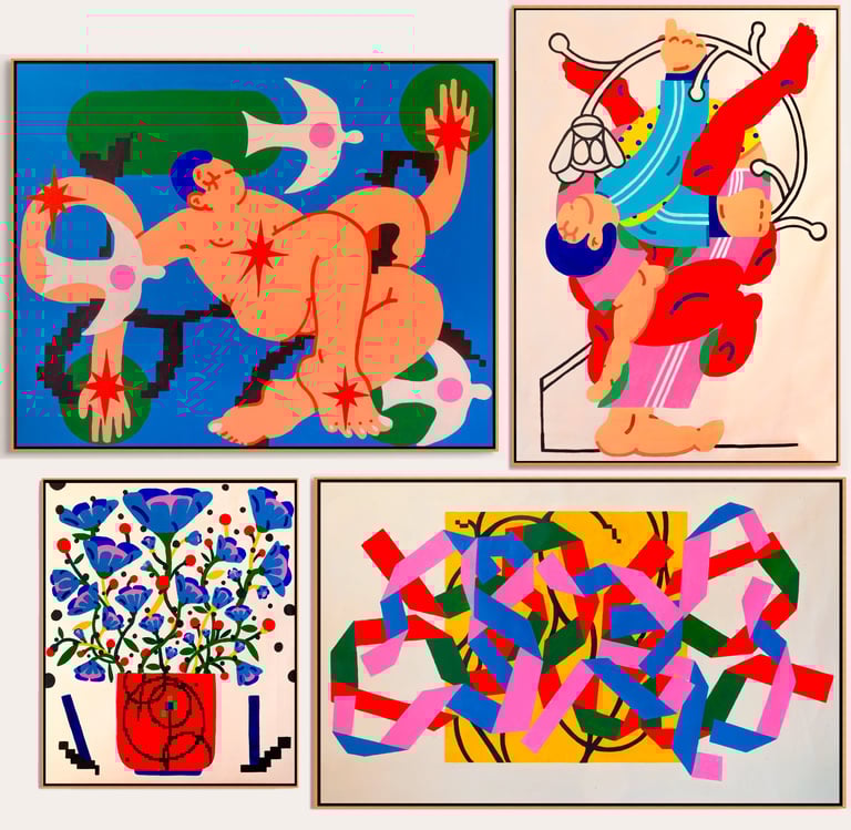 Over the years, my work has evolved from intimate illustrations to larger, more conceptual pieces that reflect on identity, culture, and the strange beauty of contemporary life.